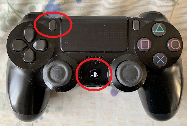 まず、デュアルショック4の「PS」ボタンと「SHARE」ボタンを同時長押しします。