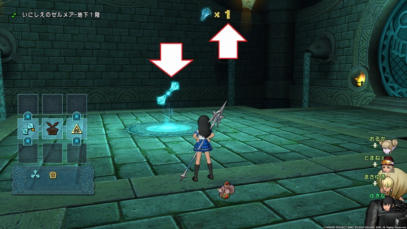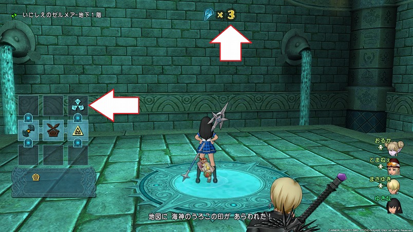 この場合現在「海神のうろこ」所持数が1つですが、この部屋で「海神のうろこ」2つのものがあります。これをゲットしていくと……