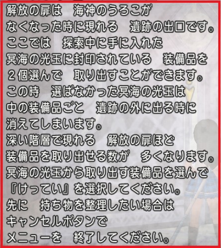 だって、スタートに戻って、上の扉1個開けたら「海神のうろこ」3つ(差し引き所持数5になる)取れる上に、また未開の部屋がオープンされるわけです!
